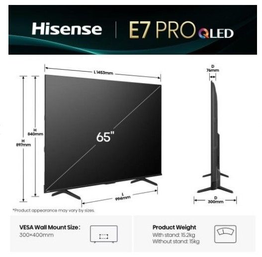 - Diagonální úhlopříčka obrazovky (palce) : 65 in