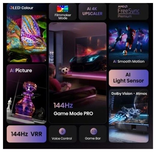 Díky funkci 4K AI Upscaler bude mít jakýkoli sledovaný obsah čistou podobu kvality 4K, čímž promění všední věci v nevídané vizuální zážitky. O plynulost obrazu se stará technologie MEMC. Procesor s umělou inteligencí dokáže rozpoznat rychle se pohybující objekty a rekonstruovat jednotlivé pixely pro zachování plynulosti obrazu.