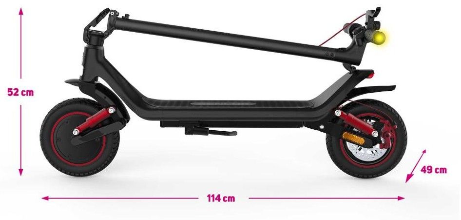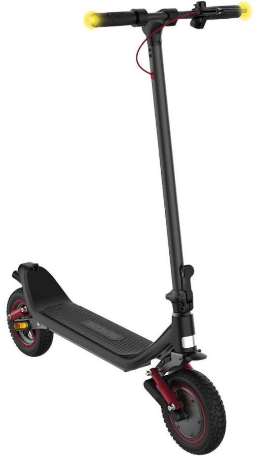 Pro bezpečnost je koloběžka vybavena LED osvětlením vpředu a vzadu a LED displejem, který zobrazuje všechny potřebné informace o aktuálním módu, rychlosti, stavu baterie a připojení Bluetooth. Blinkry pro indikaci odbočování vám usnadní bezpečnou jízdu ve městě. Dušové komfortní pneumatiky o velikosti 10 palců zajistí pohodlnou a stabilní jízdu, a kotoučová brzda poskytuje efektivní zastavení.