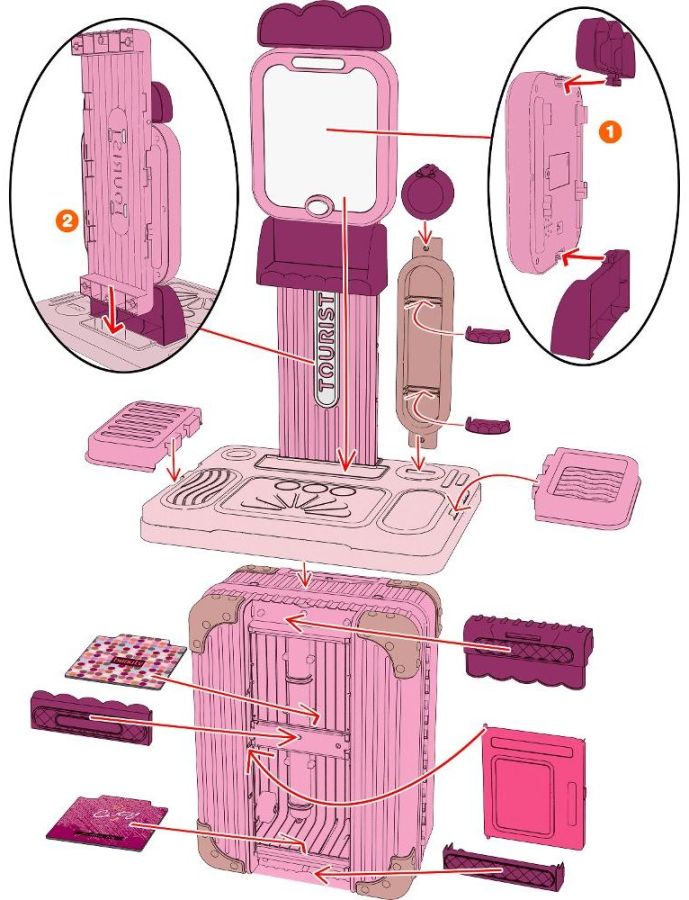 - Salon lze saložit do praktického kufříku nebo postavit jako kosmetický stolek. Díky této variabilitě si děti mohou vybrat, jak si se stolkem budou hrát. Snadno se přenáší pomocí praktického ouška a koleček. Kufřík zároveň pomáhá udržet všechny věci pohromadě.