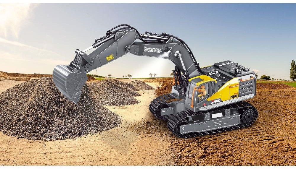 - READY TO RUN, Bagr je připraven k okamžitému hraní - stačí vložit přiložené baterie.ač.