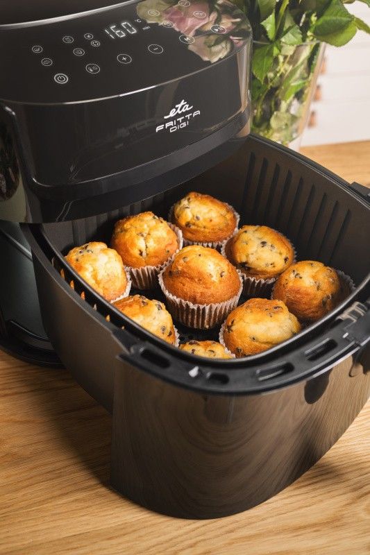 S horkovzdušnou fritézou ETA Fritta Digi budete v kuchyni válet. Díky 8 přednastaveným programům vždy připravíte perfektní steak, křupavé hranolky, šťavnatou rybu, nadýchaný koláč nebo ji můžete využít jako sušičku potravin.