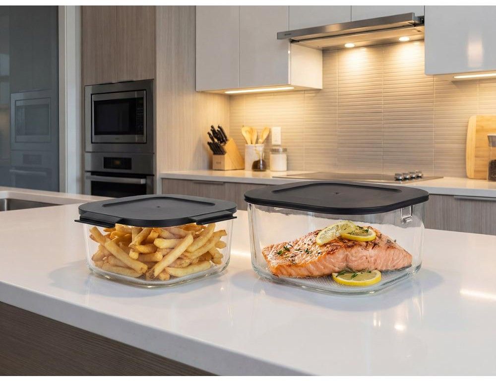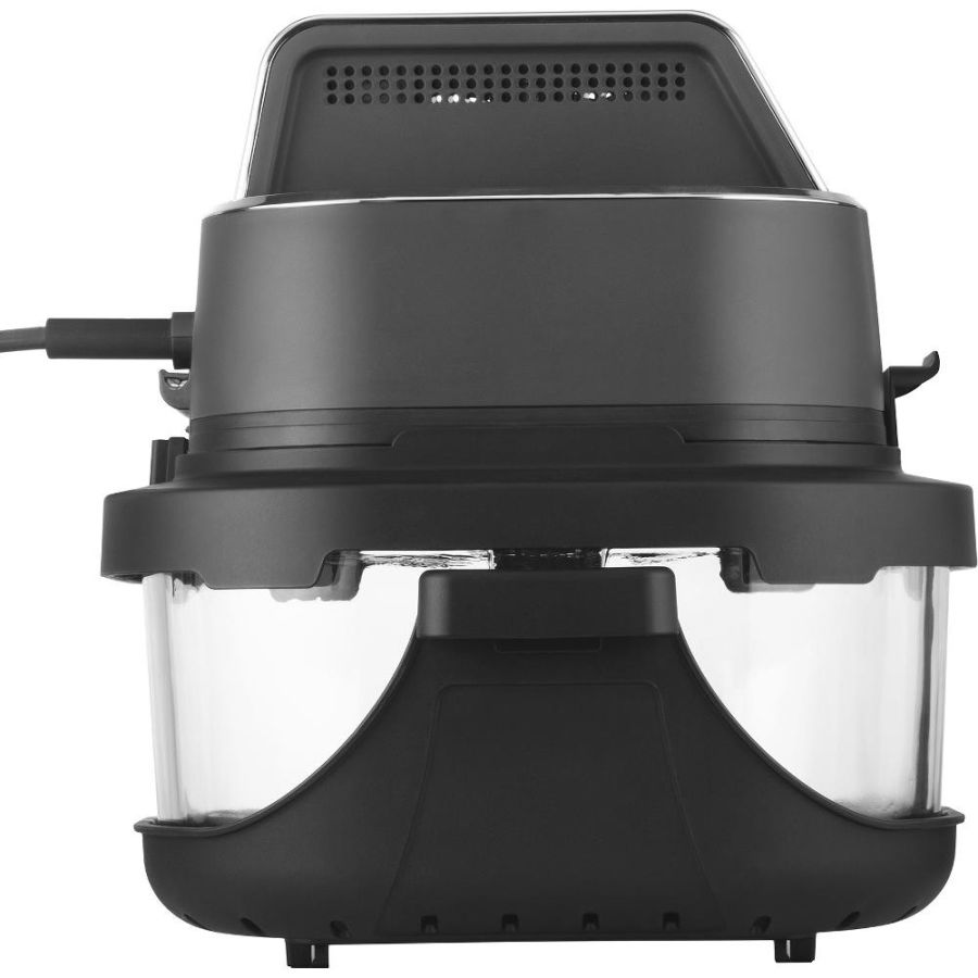 Každá nádoba má držák s uchy a hned po uvaření se dá rovnou použít jako skleněný pekáč na stůl, ze kterého můžete servírovat. Také má víčko, kterým ji uzavřete, a po vychladnutí uložíte do lednice nebo vezmete s sebou třeba do práce. Tato fritéza je navržena tak, že se celá ohřevná jednotka na jednotlivé nádoby přikládá shora, takový „tyčák styl“. Do nádoby dáte jídlo, na nádobu nasadíte ohřevnou jednotku, na dotykovém displeji nastavíte jeden ze 4 režimů a můžete pozorovat, jak se vaše jídlo připravuje. Využít můžete klasické fritování horkým vzduchem, pečení, extra křupavé pečení a pak super vychytávku ohřívání do křupava, se kterým bude včerejší jídlo po ohřátí skvěle křupavé.