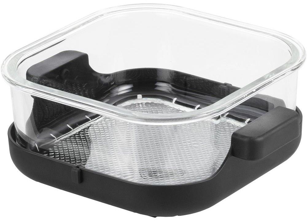 Zdravotně nezávadná skleněná nádoba bez povrchové úpravy je bezpečná pro každodenní používání a neabsorbuje pachy ani chutě. Navíc vidíte celý proces přípravy, což dává vaření větší jistotu i radost. Ohřevná jednotka se jednoduše nasadí shora na zvolenou nádobu, vaříte bez složité manipulace a po dokončení jen vezmete nádobu s uchy. Jídlo rovnou servírujete nebo uložíte do lednice. Unikátní Fry&Go systém bez dalšího špinavého nádobí.