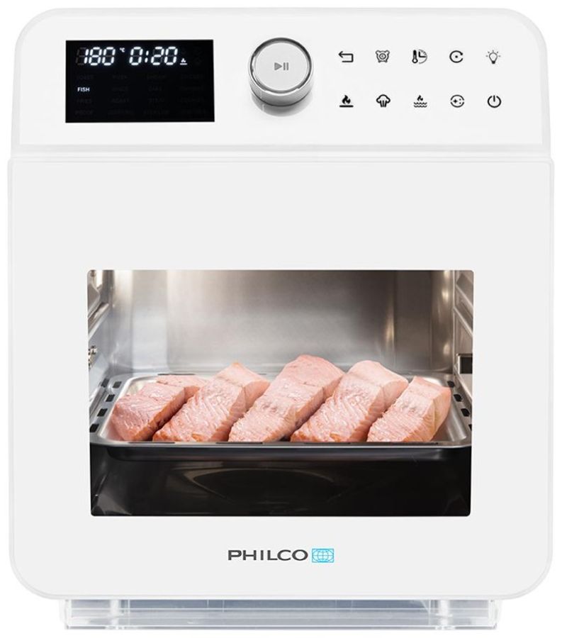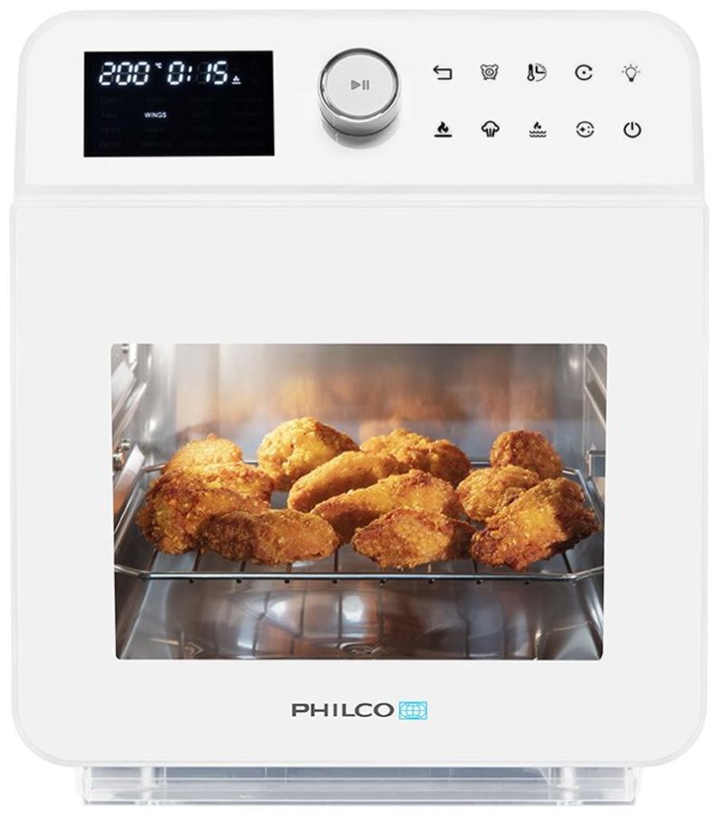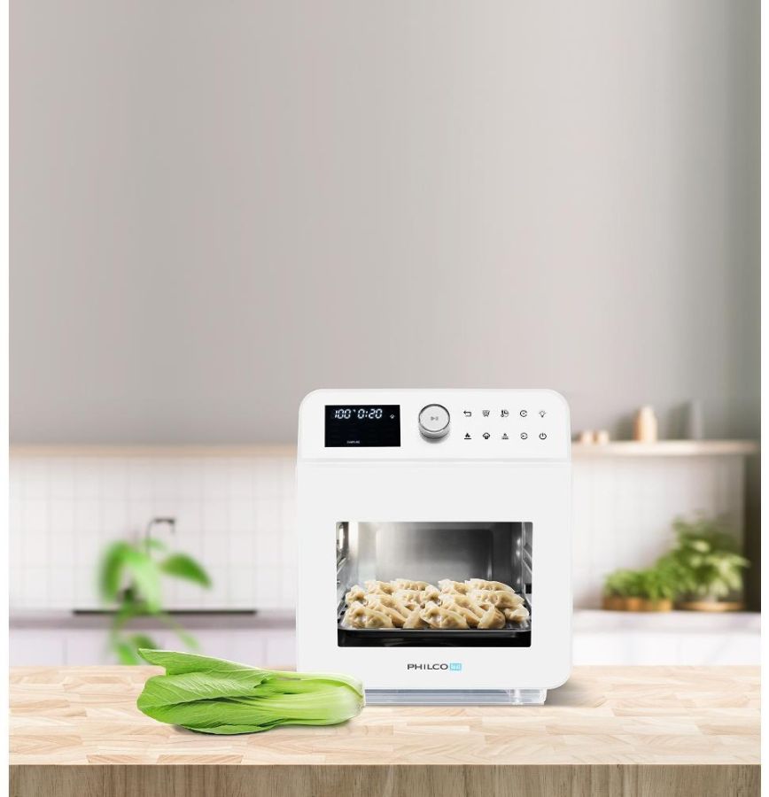 Horkovzdušná fritéza Philco PHAO 1115 W v bílé barvě s funkcí páry pro dokonalou přípravu mnoha různých receptů. Chytře kombinuje režimy vaření, abyste vždy dosáhli perfektního výsledku – na povrchu křupavé, uvnitř šťavnaté.