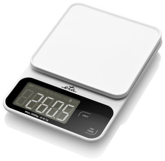 I gram může rozhodnout. Zvlášť když připravujete výběrovou kávu nebo ladíte chuť omáčky k dokonalosti. Digitální kuchyňská váha ETA Popi vás nezklame ani při těch nejpřesnějších úkonech – váží totiž s přesností na 0,1 gramu.