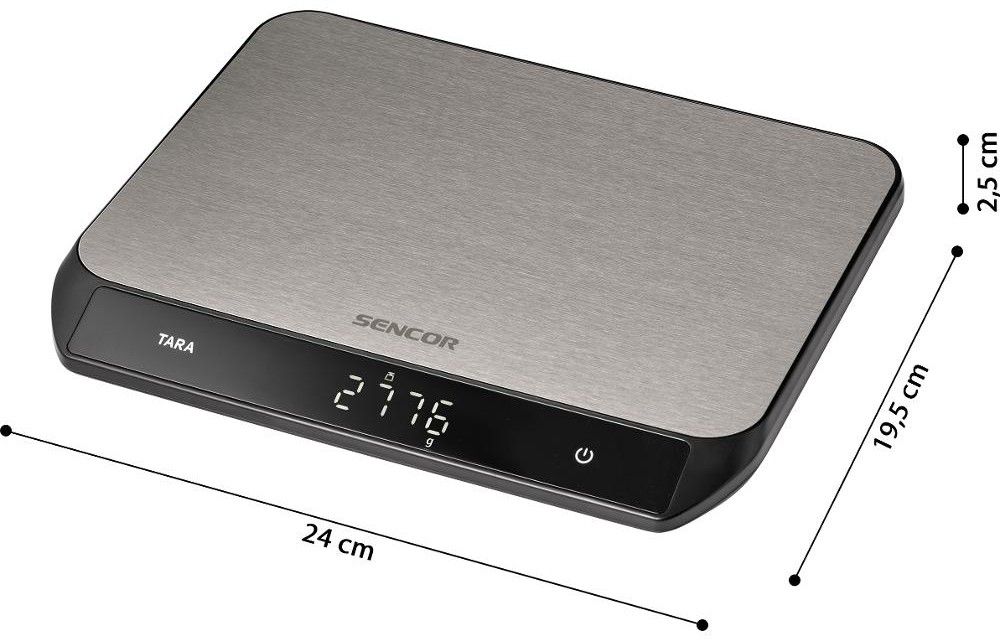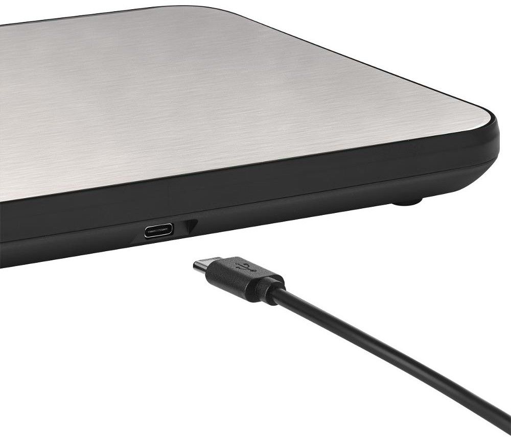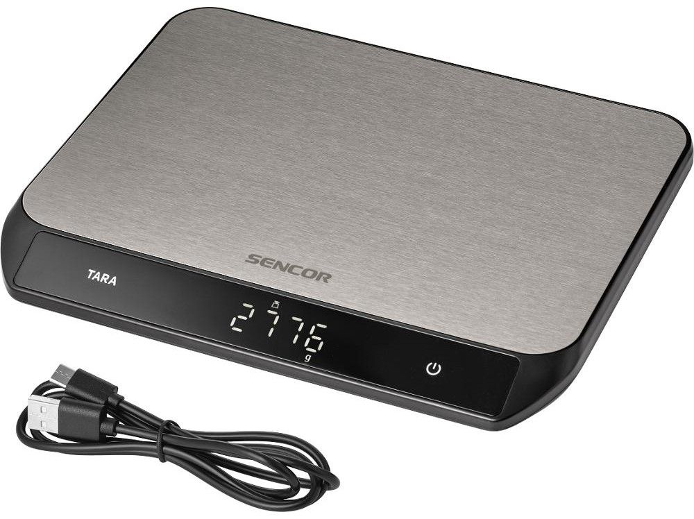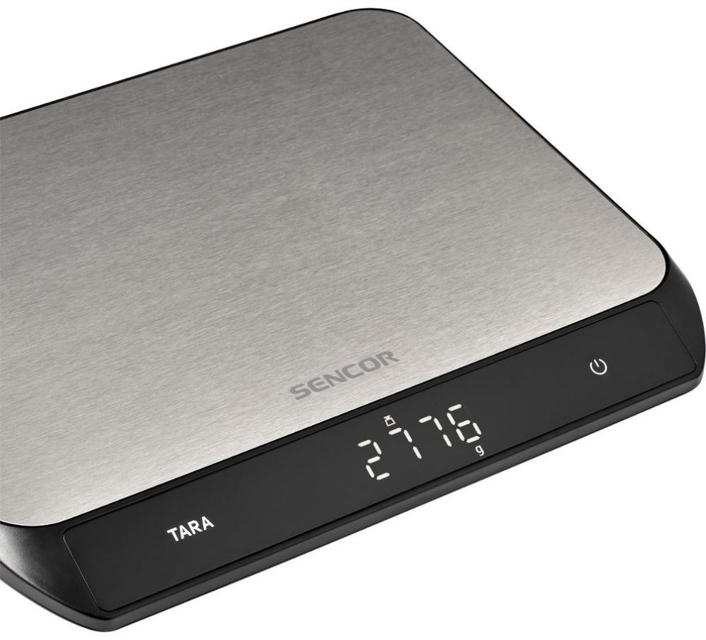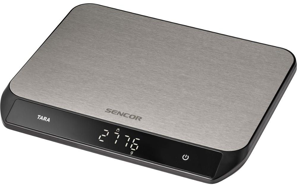 Kuchyňská váha s nerezovým povrchem odolným proti otiskům prstů s maximální nosností až 20 kg.
