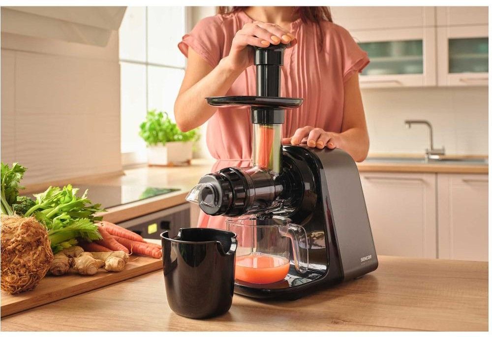 S pomocí šnekového odšťavňovače SSJ 0900BK s nízko-otáčkovým systémem zvládnete šetrně odšťavnit většinu druhů ovoce i zeleniny. Z každého plodu dostane maximum šťávy s vysokým obsahem vitamínů a minimem pěny pro přípravu dokonalého a osvěžujícího džusu.