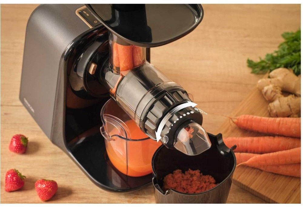 Pomocí regulátoru drti jednoduše nastavíte množství zbytkové dužiny a vydatnost šťávy podle typu suroviny – od měkkého ovoce po tvrdou zeleninu. Tím dosáhnete vždy maximální výtěžnosti šťávy.