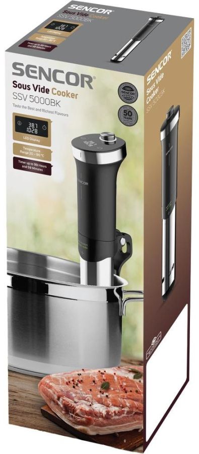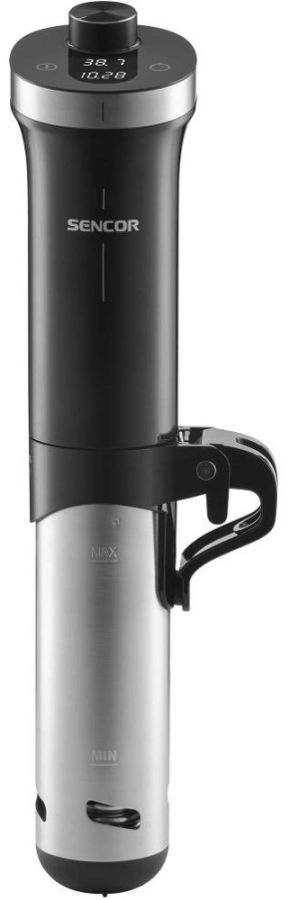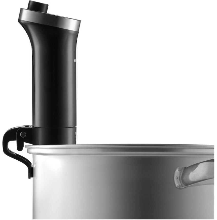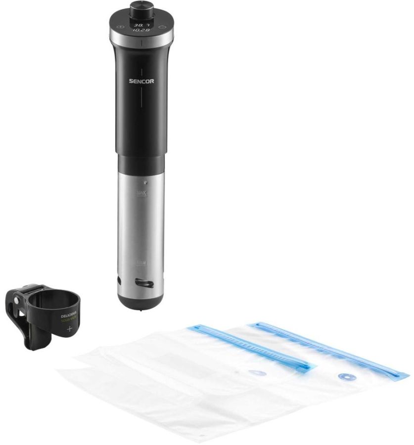 Sous vide vařič Sencor SSV 5000 je možné použít v jakékoli žáruvzdorné nádobě s minimální výškou 16 cm. Aby pevně stál, připojte ho k okraji nádoby praktickým klipem.
