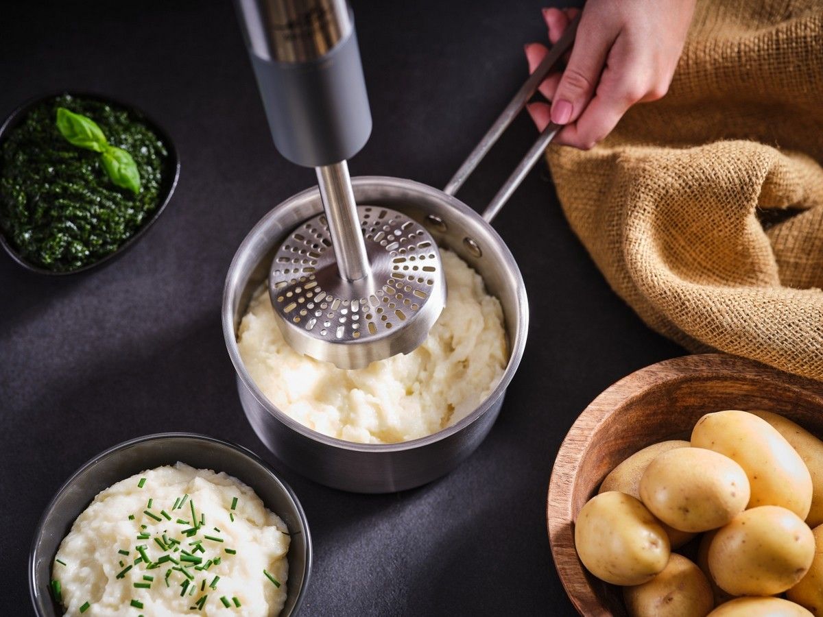 Nástavec na mačkání brambor vám pomůže s přípravou bramborové kaše, ale i kaše z dýně, batátů či mrkve. Snadno a rychle tak vytvoříte chutnou přílohu i zdravé ovocné či zeleninové kaše pro děti.