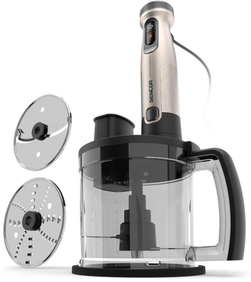 Tyčový ponorný mixér 4v1 s nerezovým nástavcem, příkonem 1 500 W a 25 rychlostmi.