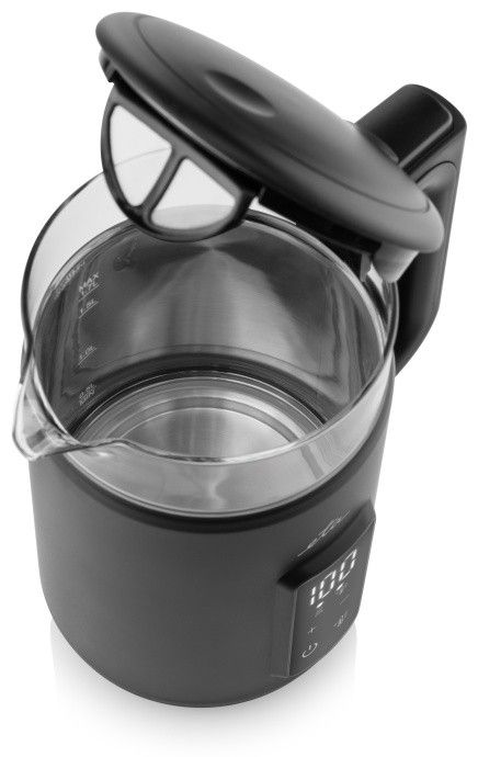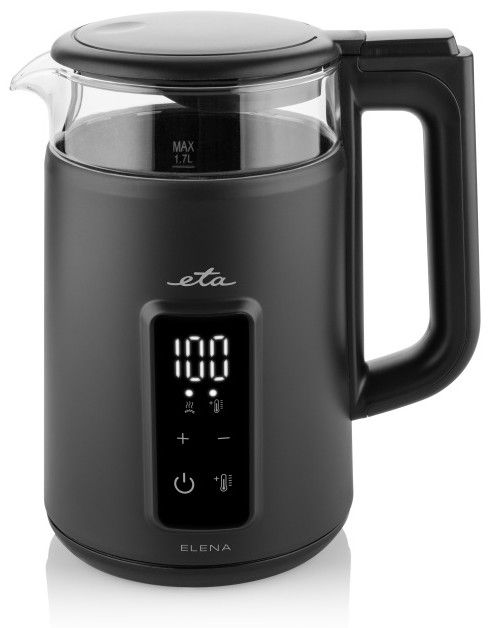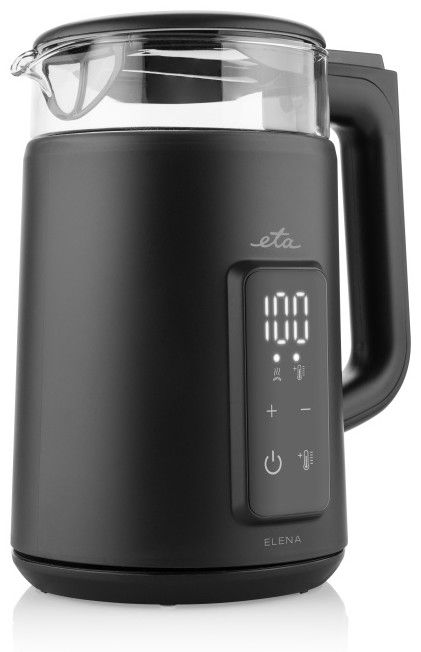 Skleněná rychlovarná konvice ETA Elena ve dvouplášťovém provedení bude nejen praktickým, ale i stylovým doplňkem každé moderní kuchyně. Na přehledném LED displeji pohodlně sledujete aktuální teplotu vody, zatímco pomocí intuitivních dotykových tlačítek si jednoduše zvolíte přesně takovou teplotu, jakou právě potřebujete – od 40 do 100 °C.