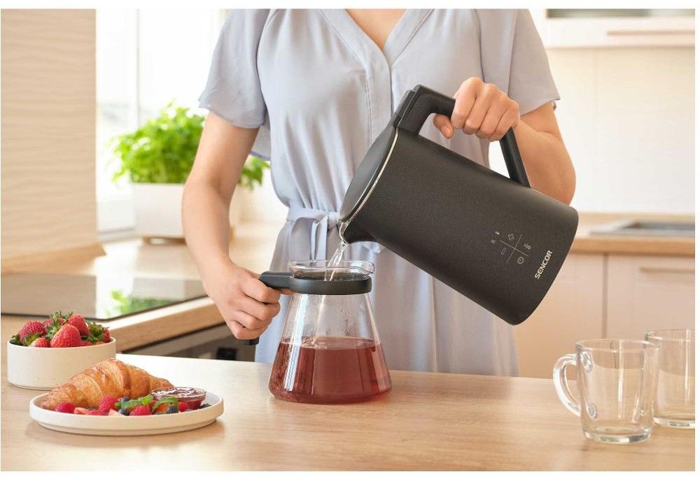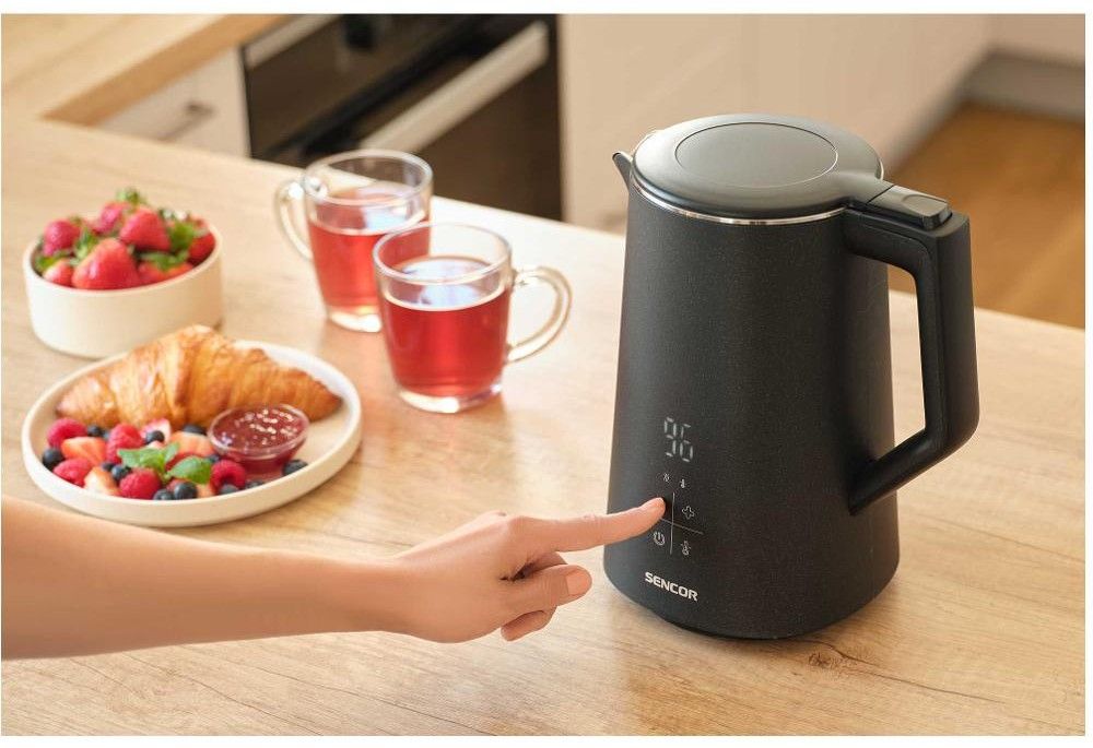 Rychlovarná konvice o objemu 1,7 l s dvouplášťovým provedením. Má regulaci teploty, dotykový ovládací LED panel, trojnásobné bezpečnostní jištění a zakrytou topnou spirálu.