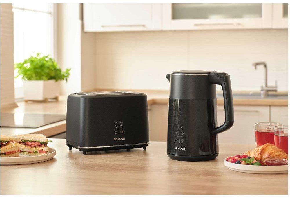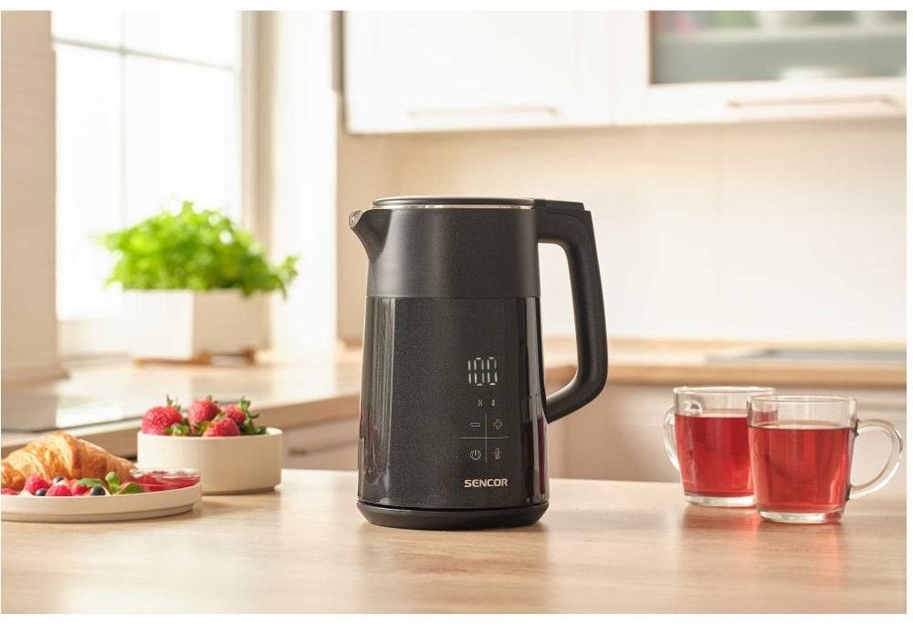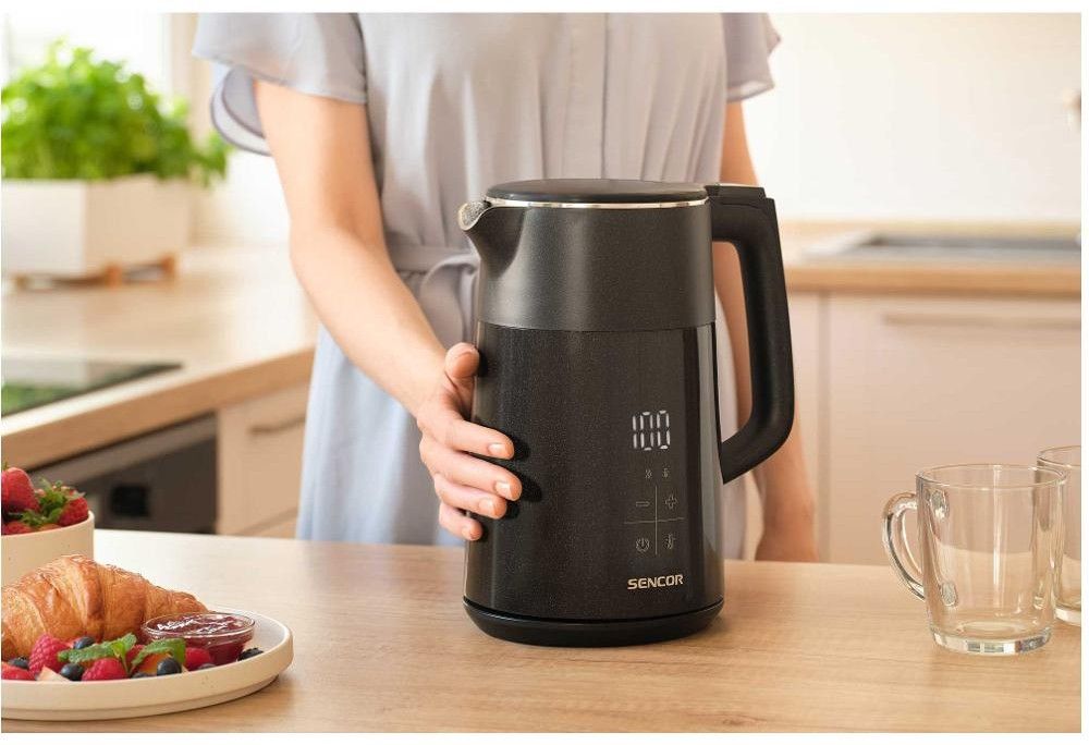 Rychlovarná konvice o objemu 1,7 l s dvouplášťovým provedením. Má regulaci teploty, dotykový ovládací LED panel, trojnásobné bezpečnostní jištění a zakrytou topnou spirálu.