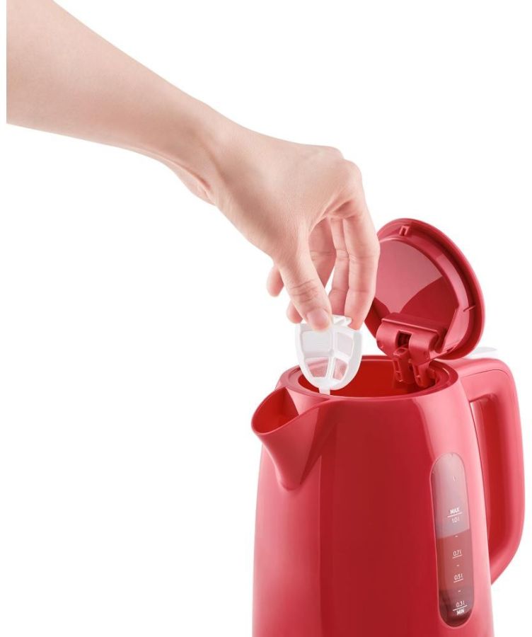 Obsah balení: Rychlovarná konvice, 360° základna s úložným prostorem pro napájecí kabel, Vyjímatelný filtr proti vodnímu kameni