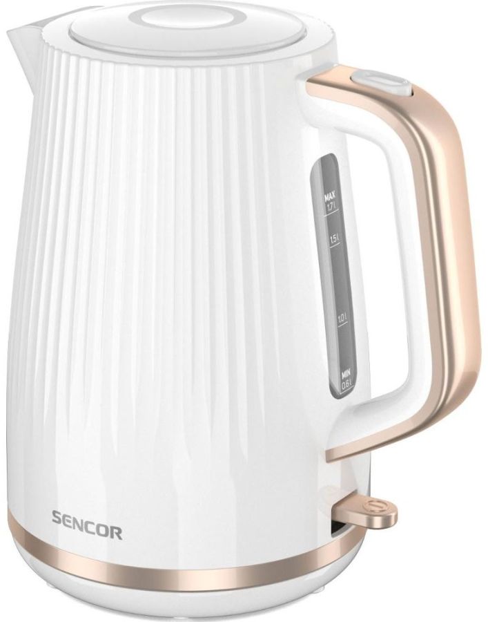 Plastová rychlovarná konvice o objemu 1,7 l. Má průhledný vodoznak, světelnou kontrolku zapnutí a zakrytou topnou spirálu.