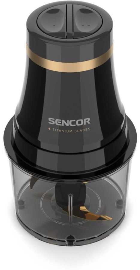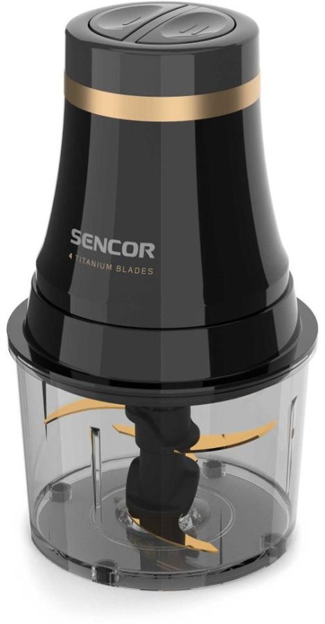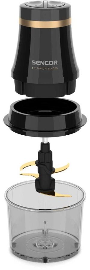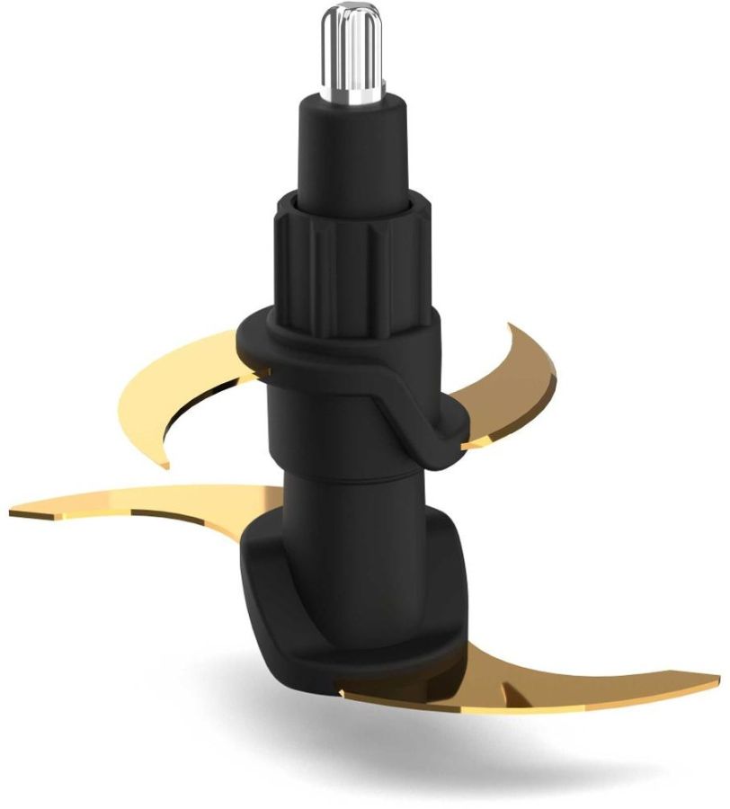 - Plastová nádoba o objemu 1 l a 4 nože s vrstvou zlata a titanu pro všechny druhy sekání potravin;