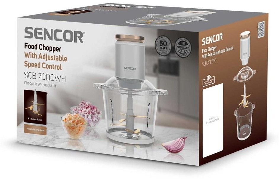 Sekáček má výkonný 800W motor, 6 titanových nožů a nádobu o objemu 3 l.
