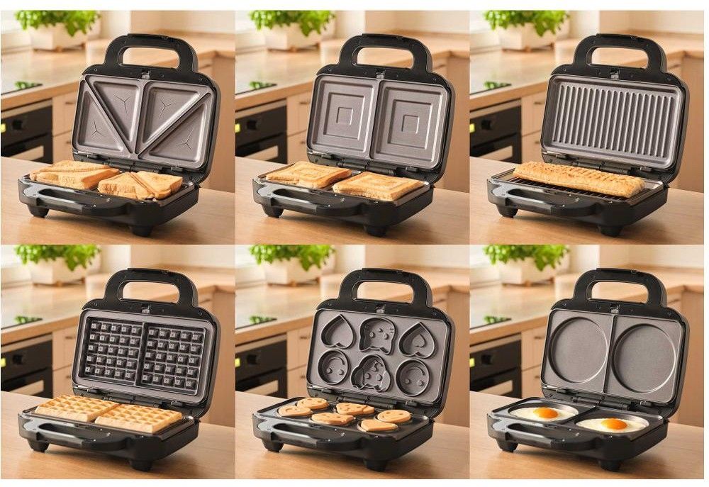Sendvičovač 6v1 s XL deskami na pečení umožní připravit toasty, panini, vafle, palačinky a lívance.