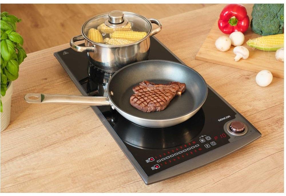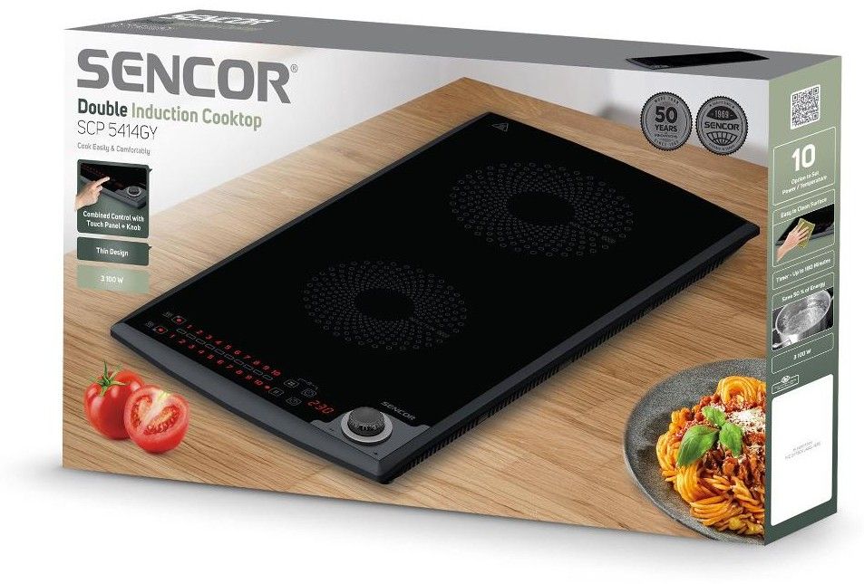 Ať už hledáte doplněk ke klasickému sporáku nebo ideální řešení na chatu, do karavanu nebo třeba na kempování, dvouplotýnkový indukční vařič Sencor SCP 5414GY je přesně pro vás. S kombinovaným výkonem 3 100 W a hned 10 teplotními úrovněmi (60–240 ℃) bez potíží na 2 nezávislých plotýnkách uvaříte či usmažíte to, na co máte právě chuť. Má jednoduché ovládání dotykem prstu a otočným knoflíkem, časovač od 1 minuty po 3 hodiny, a díky kompaktním rozměrům je snadno přenosný.