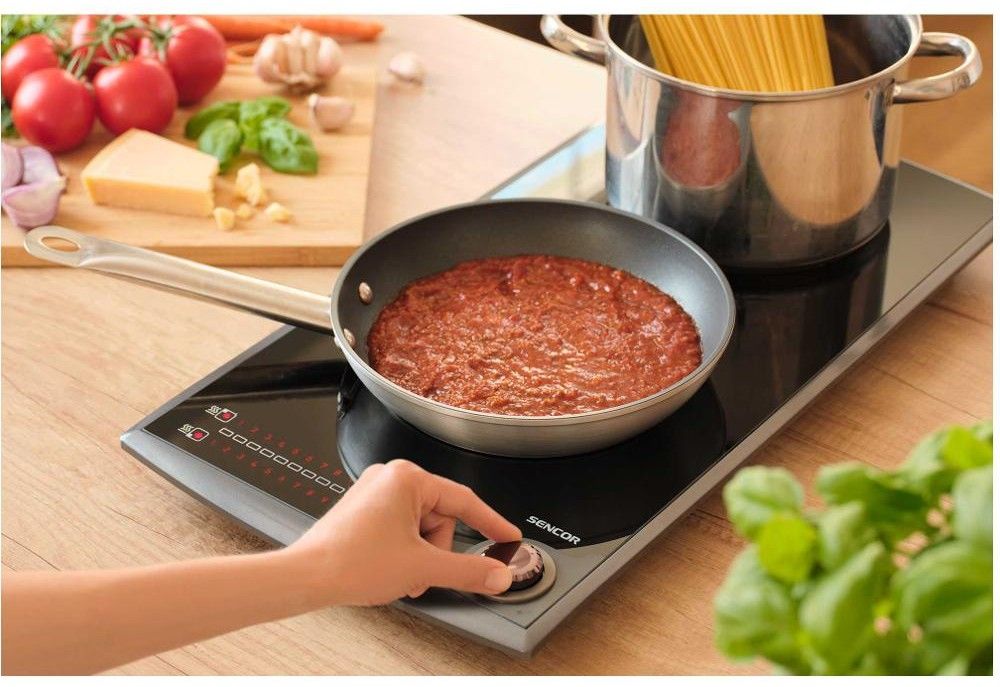 Díky 2 nezávislým indukčním plotýnkám můžete vařit více jídel současně, a to bez kompromisů v rychlosti nebo kvalitě přípravy. Každá plotýnka se ovládá samostatně, což znamená maximální flexibilitu.