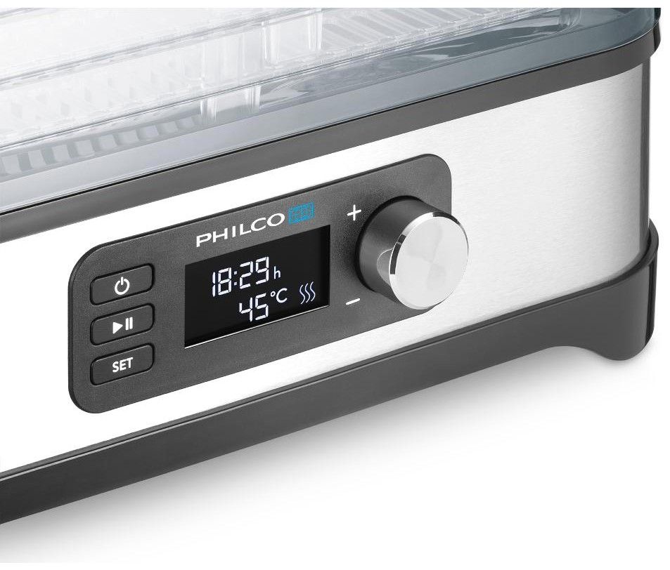 Sušička PHFD 5080 je vhodná, díky svým kompaktním rozměrům a zároveň komfortu 8 plat, která jsou vyrobena ze zdravotně nezávadného materiálu, nabídnout dostatečný prostor a jsou průhledná, takže se můžete kochat procesem vysoušení.
