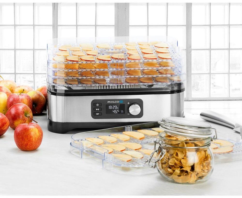 Pokud jste vášnivý houbař, zahrádkář nebo řešíte často otázku jak uchovat potraviny na pozdější dobu, sušička potravin Philco PHFD 5080 pro vás má řešení. Věděli jste, že vysušené potraviny vydrží bezpečně k jídlu rok i déle? Další výhodou sušení je získání prostoru. Vysušená potravina se zbaví vody a smrští se do menších rozměrů, takže je možné skladovat větší množství na menším prostoru. Sušení také zvýrazňuje chutě. Jako příklad můžeme vzít některé druhy ovoce, jako jsou jablka, hrušky nebo broskve, které pak mají sladší chuť. Mimo toto vše jmenované je sušení je velmi zdravým způsobem úpravy potravin, bez přidávání dalších chemických přípravků. Navíc sušené potraviny neztrácejí ze svých nutričních hodnot, takže jsou ideální volbou pro svačiny na výlety, do práce nebo školy.