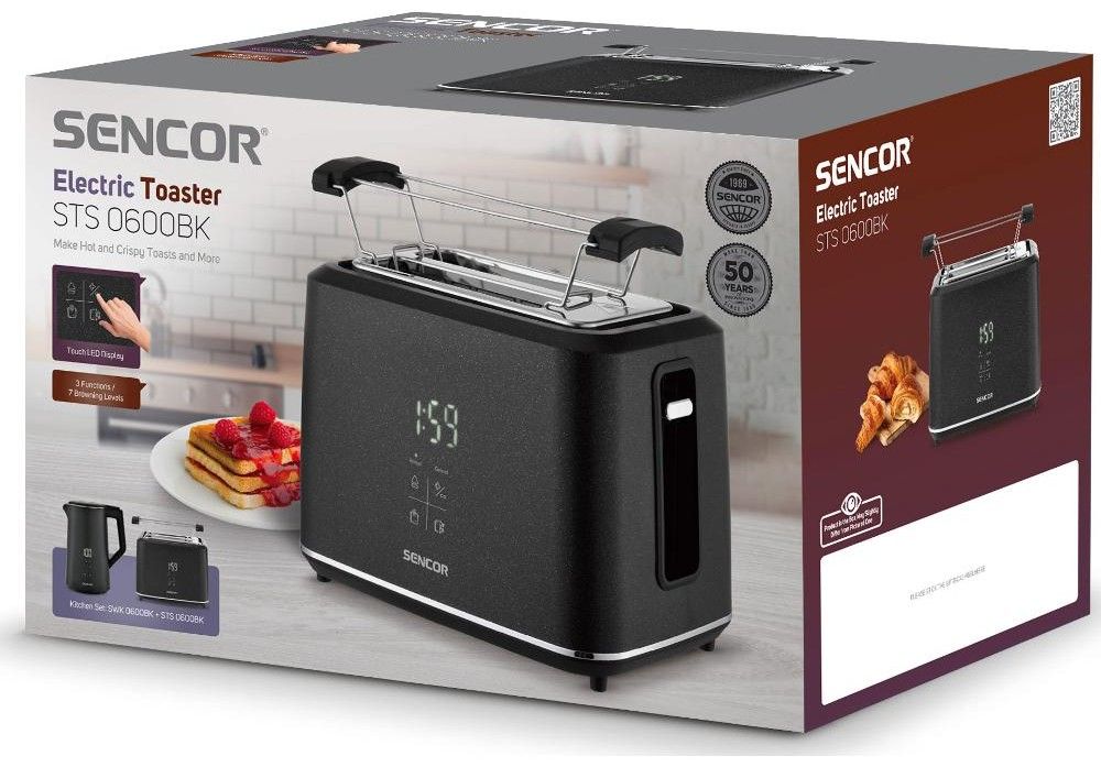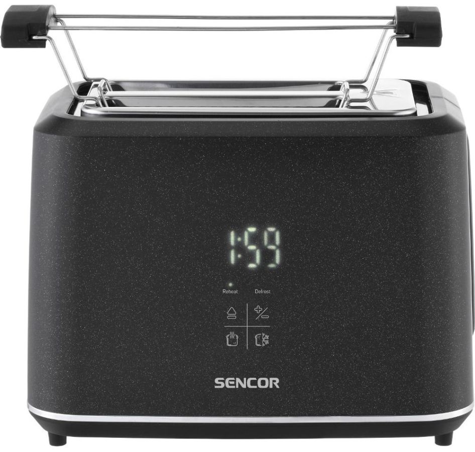 Topinkovač připraví 2 topinky současně. Má 3 funkce v 1, dotykový displej, časovač a vyjímatelnou misku na drobky.
