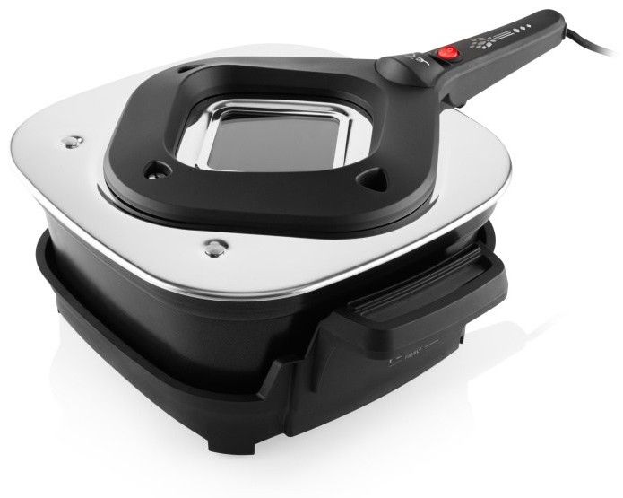 Tepelně izolovaná držadla umožňují pohodlnou a bezpečnou manipulaci. Víko je opatřeno skleněným průzorem pro snadnou kontrolu přípravy jídla a ventilačními otvory pro optimální odvod páry. Bezpečnostní pojistka zajistí automatické vypnutí přístroje při nesprávném sestavení nebo odejmutí víka, což výrazně zvyšuje bezpečnost používání. Nepřilnavý povrch nádoby zabraňuje připékání a usnadňuje čištění.