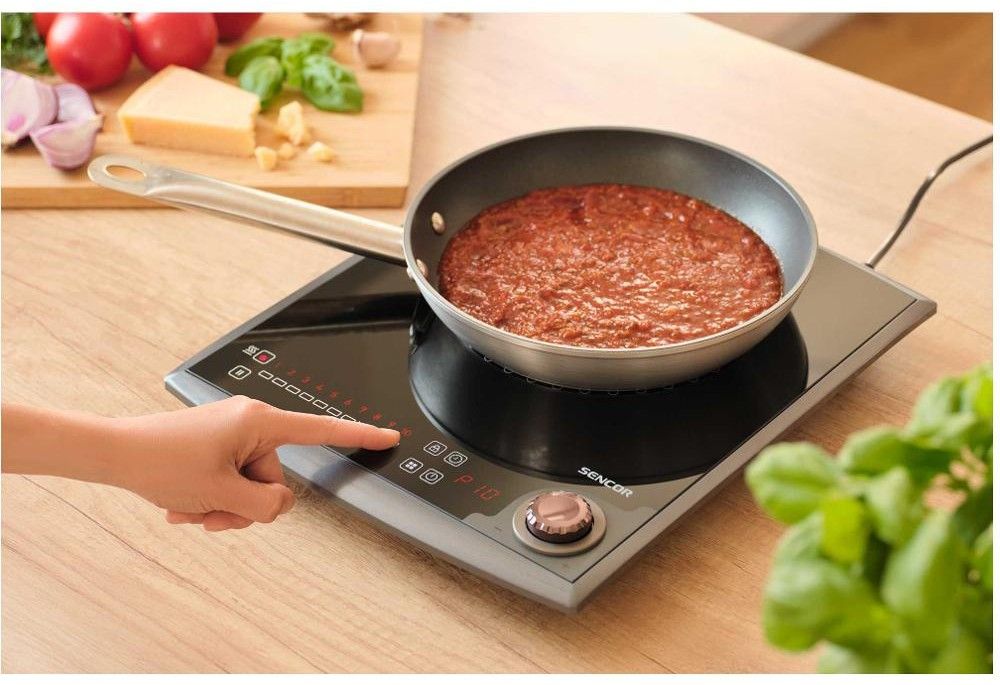 Ať už hledáte doplněk ke klasickému sporáku nebo ideální řešení na chatu, do karavanu nebo třeba na kempování, jednoplotýnkový indukční vařič Sencor SCP 3414GY je přesně pro vás. S výkonem 2 000 W a hned 10 teplotními úrovněmi (60–240 ℃) bez potíží na plotýnce uvaříte či usmažíte to, na co máte právě chuť. Má jednoduché ovládání dotykem prstu a otočným knoflíkem, časovač od 1 minuty po 3 hodiny, a díky kompaktním rozměrům je snadno přenosný.