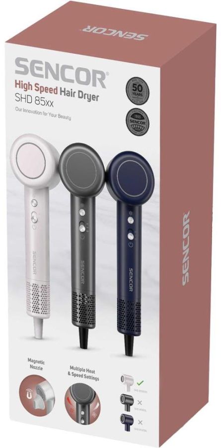 SENCOR SHD8510SL stříbrnáVysokorychlostní vysoušeč vlasů s BLDC motorem má 2 rychlosti a 4 teploty.SHD8510SL stříbrná1 652 bez DPH1 999 Kč