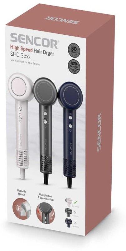 SENCOR SHD8500RS bíláVysokorychlostní vysoušeč vlasů s BLDC motorem má 2 rychlosti a 4 teploty.SHD8500RS bílá1 652 bez DPH1 999 Kč