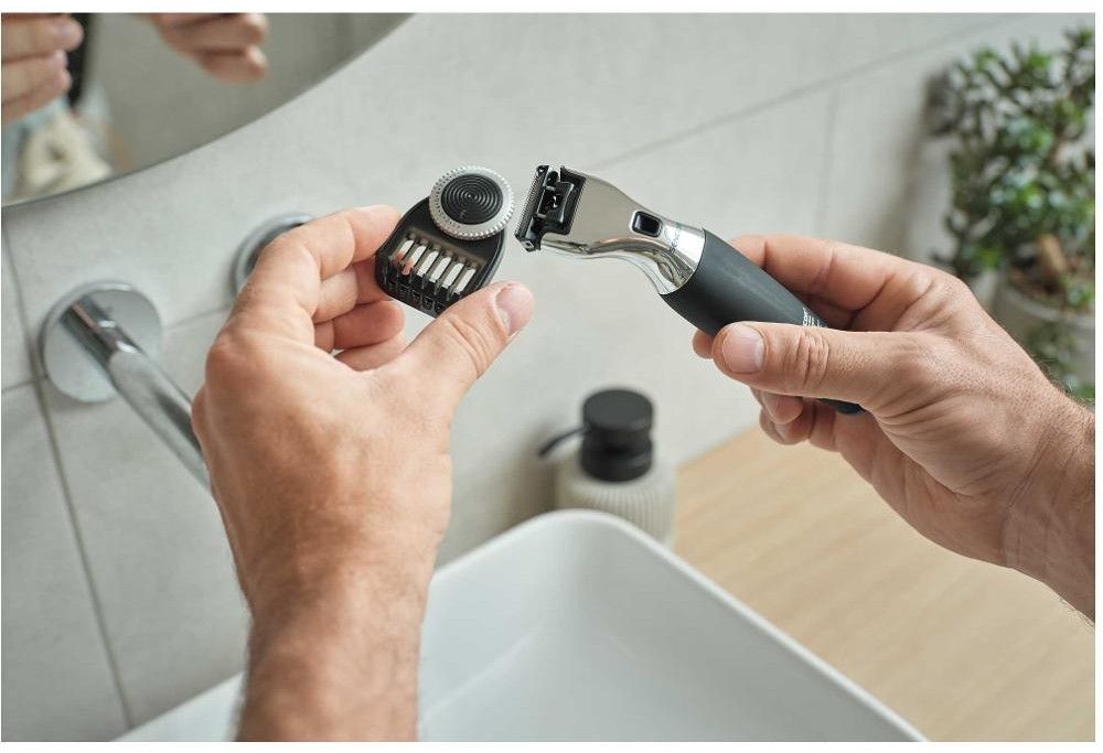 Nastavitelný hřebenový nástavec lze nastavit na délky od 0,5 do 10 mm, a to ve 20 různých úrovních. Kratší délky využijete na zkrácení vousů, střední na chlupy a delší na zastřižení vlasů.