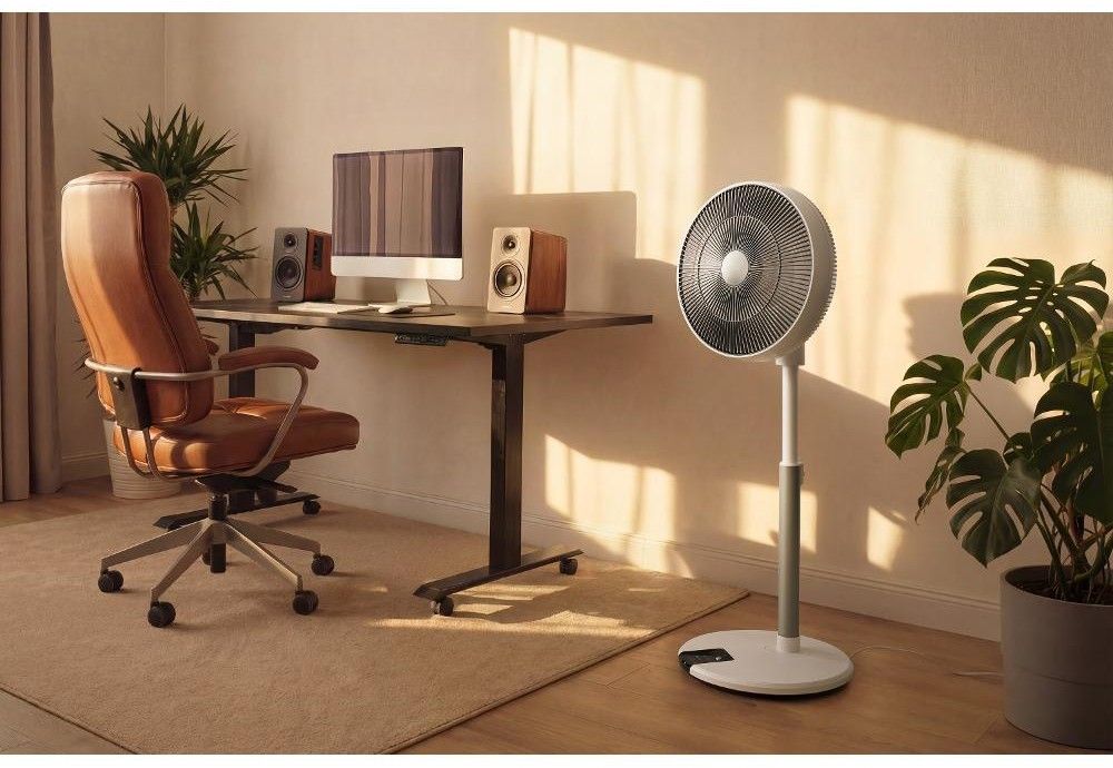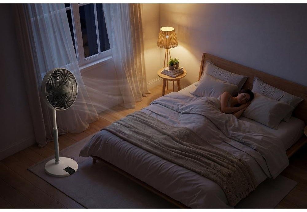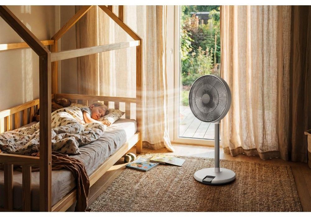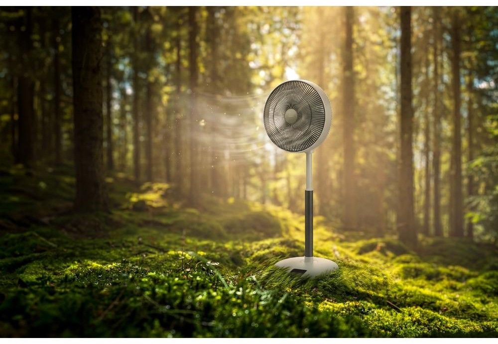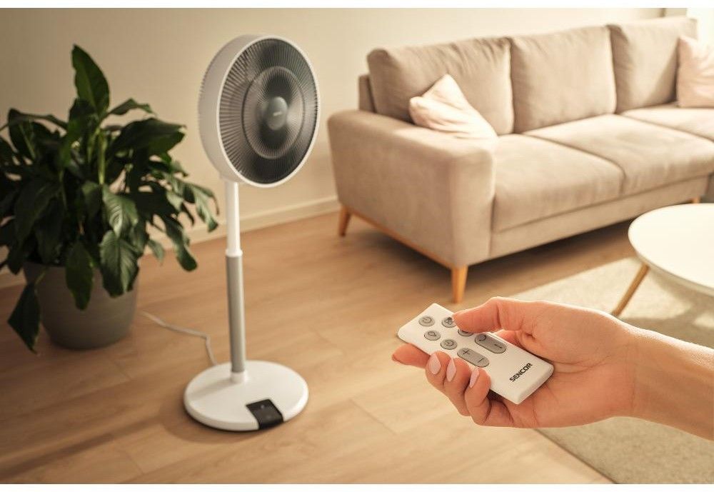 Stojanový ventilátor o průměru 36 cm má 12 úrovní rychlosti, nastavitelnou výšku, 4 provozní režimy, 8hodinový časovač a dálkové ovládání.