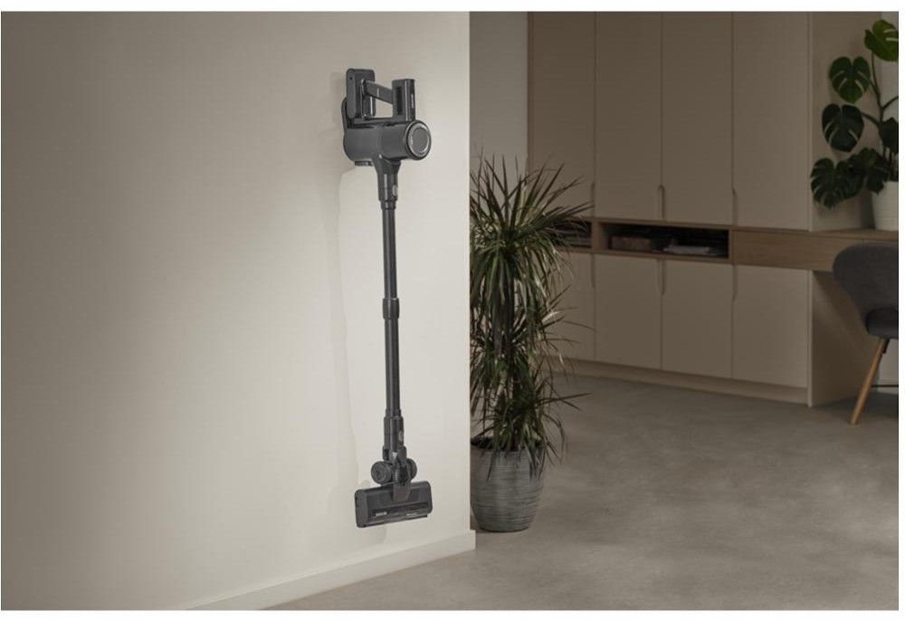 Obsah balení: tyčový vysavač 2 v 1, kombinovaná prodloužená štěrbinová a prachová hubice, síťový adaptér, držák na zeď