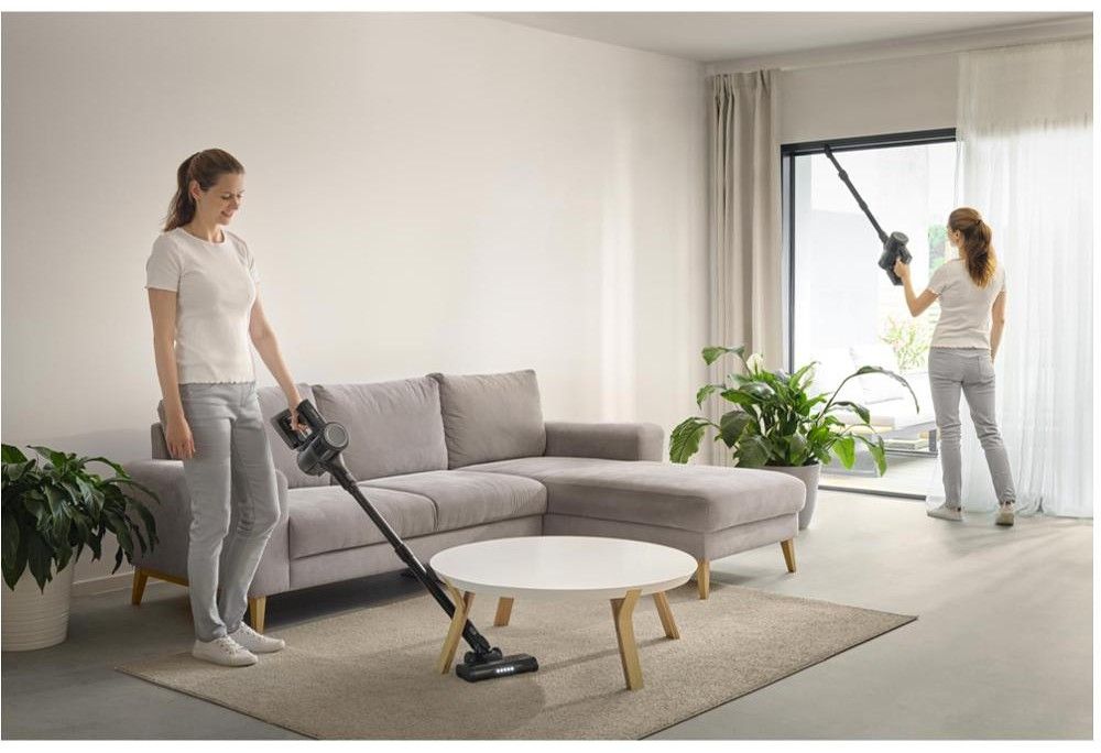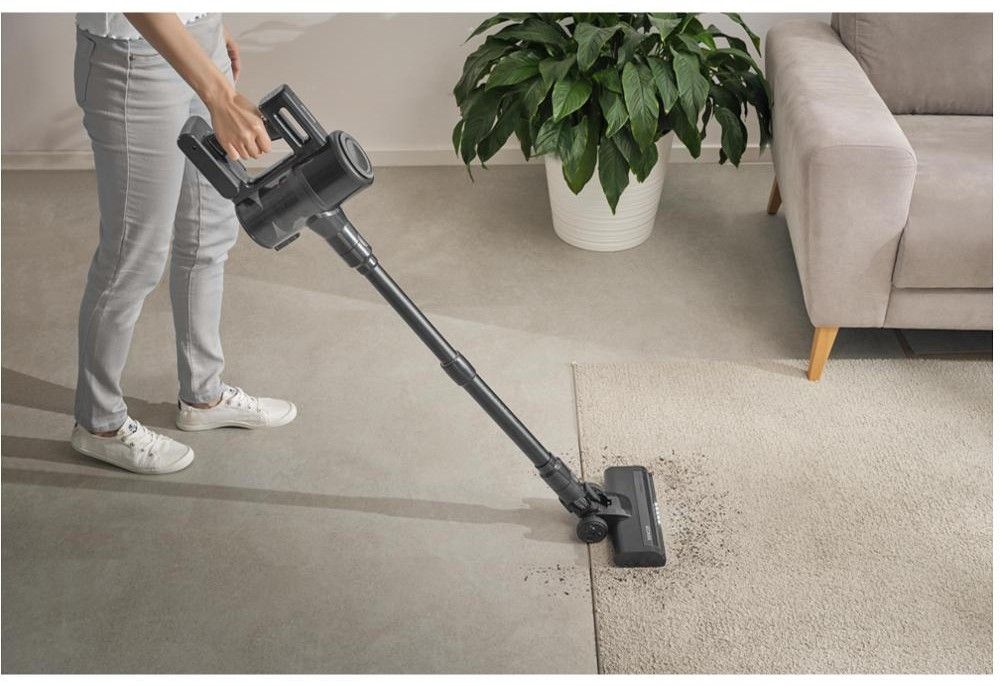 Tyčový, bezsáčkový vysavač 2v1 se 22,2 V Li-Ion akumulátorem pro pohodlné a bezdrátové vysávání. Vydrží vysávat až 35 minut.