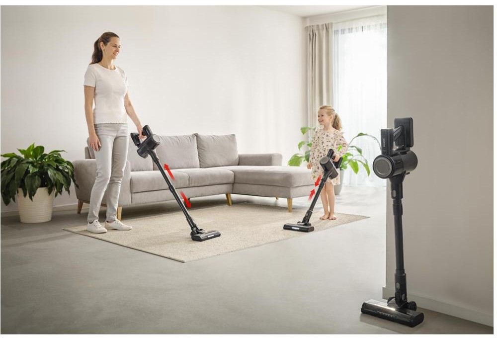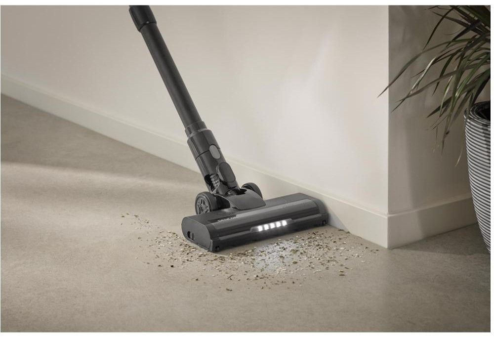 Objevte sílu a eleganci v jednom. Tyčový vysavač Sencor SVC 7221BK 2 v 1 s odnímatelnou ruční jednotkou se stane vaším nepostradatelným pomocníkem pro každodenní úklid. Je vybaven výkonným 200W digitálním motorem a rotačním kartáčem s vlastním pohonem, který si snadno poradí s koberci i tvrdými podlahami a s LED osvětlením na hubici odhalí i ten nejmenší nepořádek. Díky vysoce účinné 22,2V Li-Ion baterii s kapacitou 2 600 mAh získáte naprostou volnost při úklidu bez kabelů. Na jedno nabití zvládne až 35 minut provozu v denním režimu.