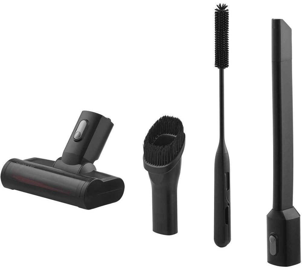 Obsah balení: podlahová myčka, hubice na mokré vysávání, rotační kartáč Cat&Dog s vlastním motorem, prachový kartáč, štěrbinová hubice s LED osvětlením, čistící kartáček, nabíjecí a úložná základna, přívodní kabel