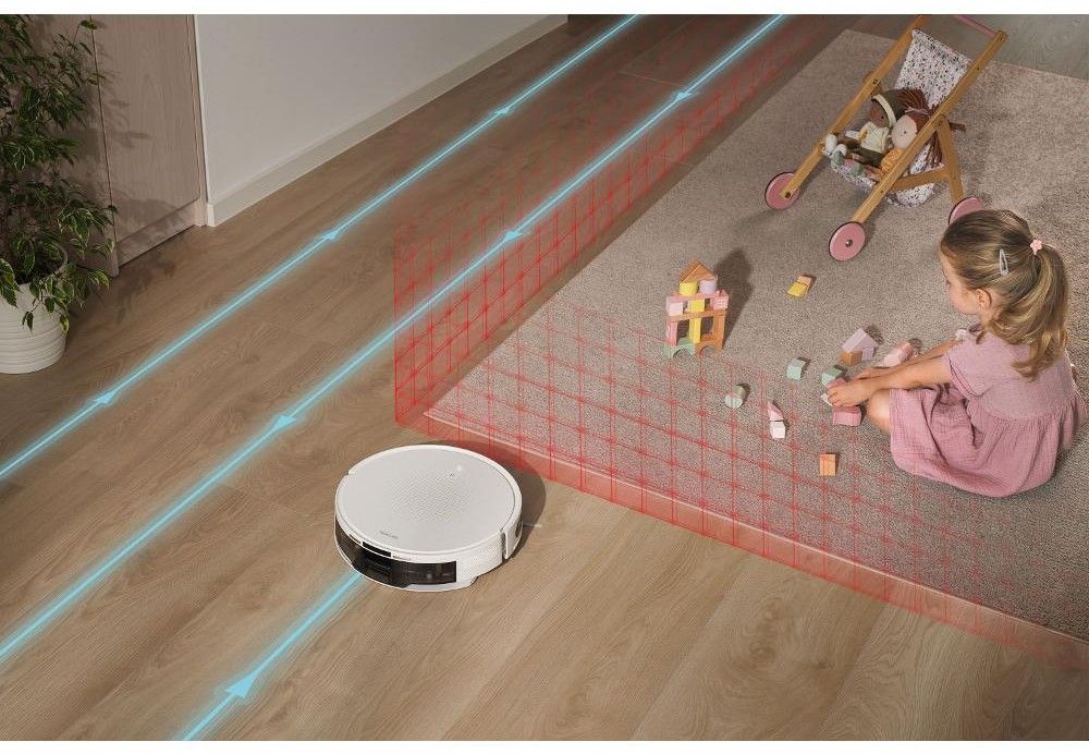 Sencor SRV 7450WH je inteligentní robotický vysavač, který zároveň mopuje a vysává. S vysoce výkonným motorem se sací sílou 5 000 Pa se můžete spolehnout na dokonalé výsledky. Li-Ion baterie s kapacitou 2 600 mAh zajistí na jedno nabití fungování až po dobu 140 minut. Přesnou orientaci v prostoru zajišťuje laserová navigace Lidar, která je integrovaná uvnitř vysavače. Díky tomu je výška robota pouhých 8,3 cm. Navigace umožňuje jednoduše naplánovat úklid v jednotlivých místnostech i nastavit zakázané zóny. K ovládání vám poslouží dálkový ovladač nebo mobilní aplikace Sencor Home. Umožněno je jednoduché spárování pomocí Bluetooth.