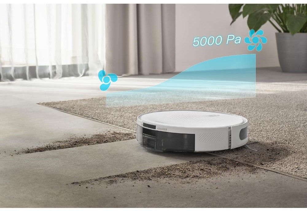 Robot si díky výkonnému motoru se sací sílou 5 000 Pa poradí s vysátím libovolného typu podlah. Při úklidu koberce s vyšším vlasem automaticky zvýší sací výkon, čímž zachytí nečistoty i z hustého vlákna. O 140minutovou výdrž na jedno nabití se postará prémiová Li-Ion baterie s kapacitou 2 600 mAh.