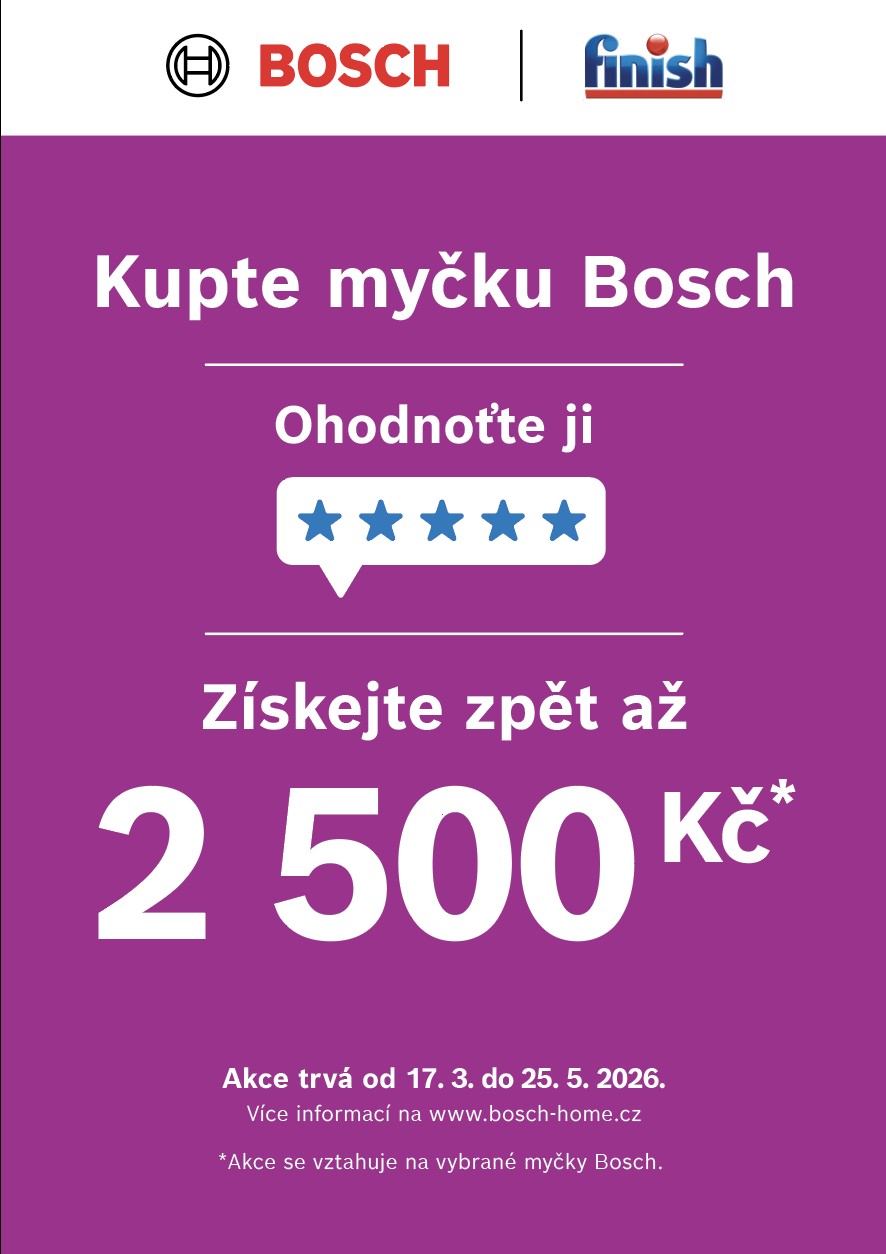 Bosch 10 let nejprodávanější značka na světě a až 2 500 Kč zpět* #LikeABosch v období 17.03. - 25.05.2026, formou Cash Back na vybrané myčky ( registrace možná až do 14. 06. 2026 )