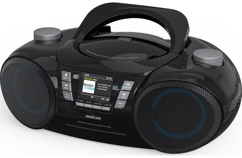 CD přehrávač Boombox s DAB+, Bluetooth, výstupní výkon 16W (2x 8W) a dálkové ovládání.