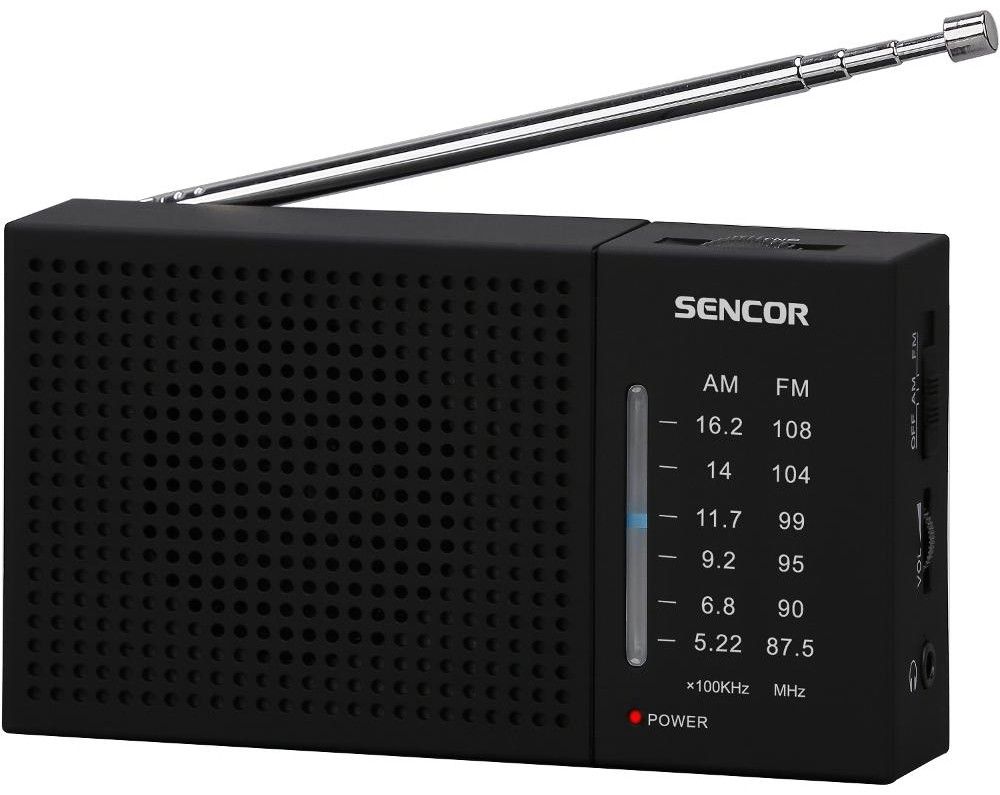 Přenosný radiopřijímač s FM, AM, teleskopickou anténou a konektorem 3,5mm pro sluchátka.