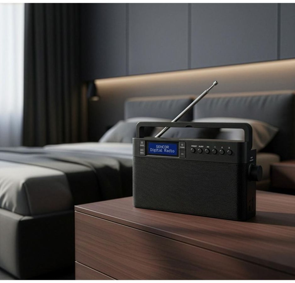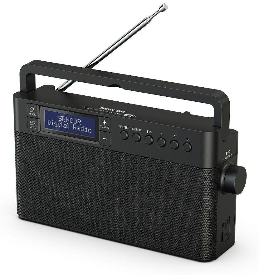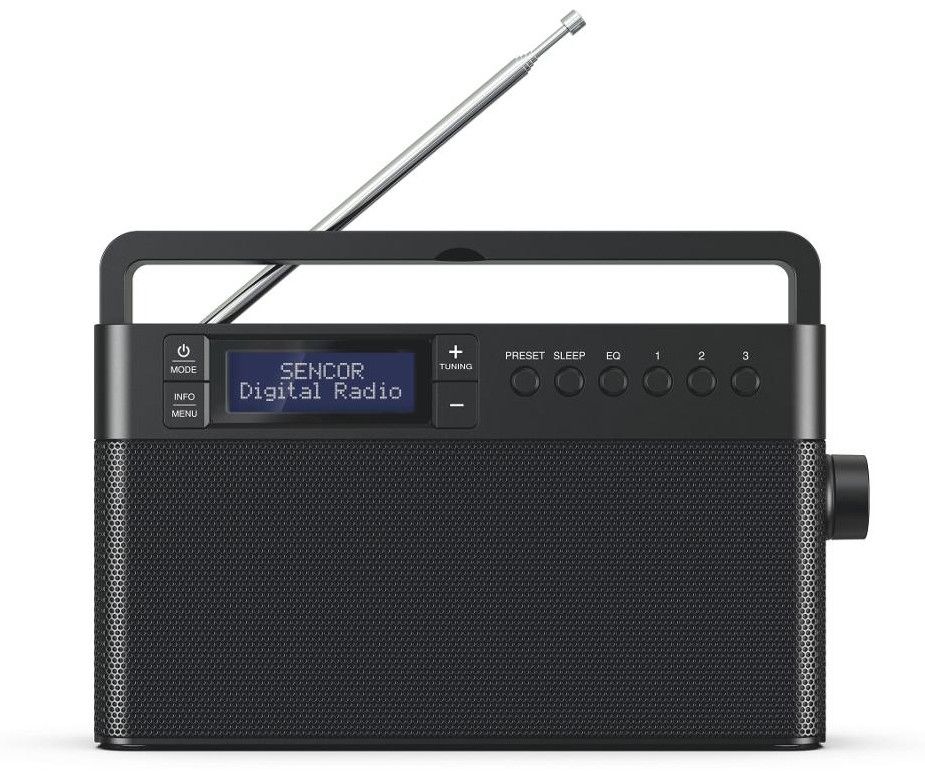 Digitální rádio DAB+. Má DAB tuner, FM, PLL ladění RDS (Radio Data System) a automatické vypnutí.