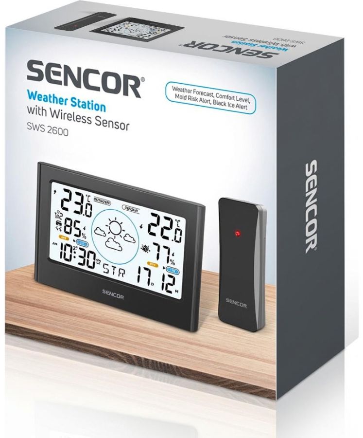 Meteorologická stanice Sencor SWS 2600 vám díky bezdrátovému snímači s přesností změří teplotu a vlhkost. Varuje také před náledím, plísněmi a ukáže úroveň komfortu.