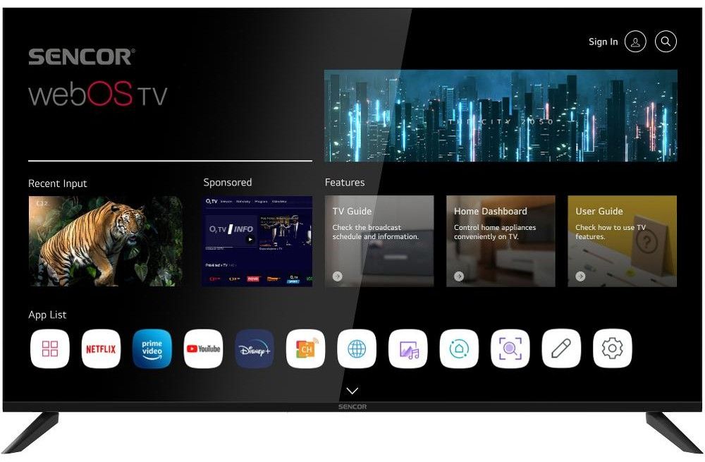 Systém WebOS, zkušenostmi ověřený operační systém vyvinutý společností LG, je velice uživatelsky komfortní, svižný a intuitivní. Pokud jde o zastoupení aplikací, ty nejdůležitější v tomto operačním systému nechybí. Rovněž máte přístup do filmoték Netflix či Amazon Prime video a nechybí ani přístup ke službám IPTV poskytovatelů. Systém běží na čtyř jádrovém procesoru ARM Cortex.