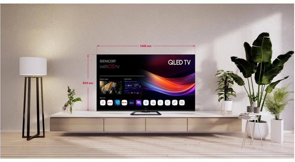 Televize QLED, úhlopříčka 164cm (65“), DVB-T2, H.265, 3x HDMI, 2x USB, CI+, Wifi, Netflix, VESA, Energetická třída F.
