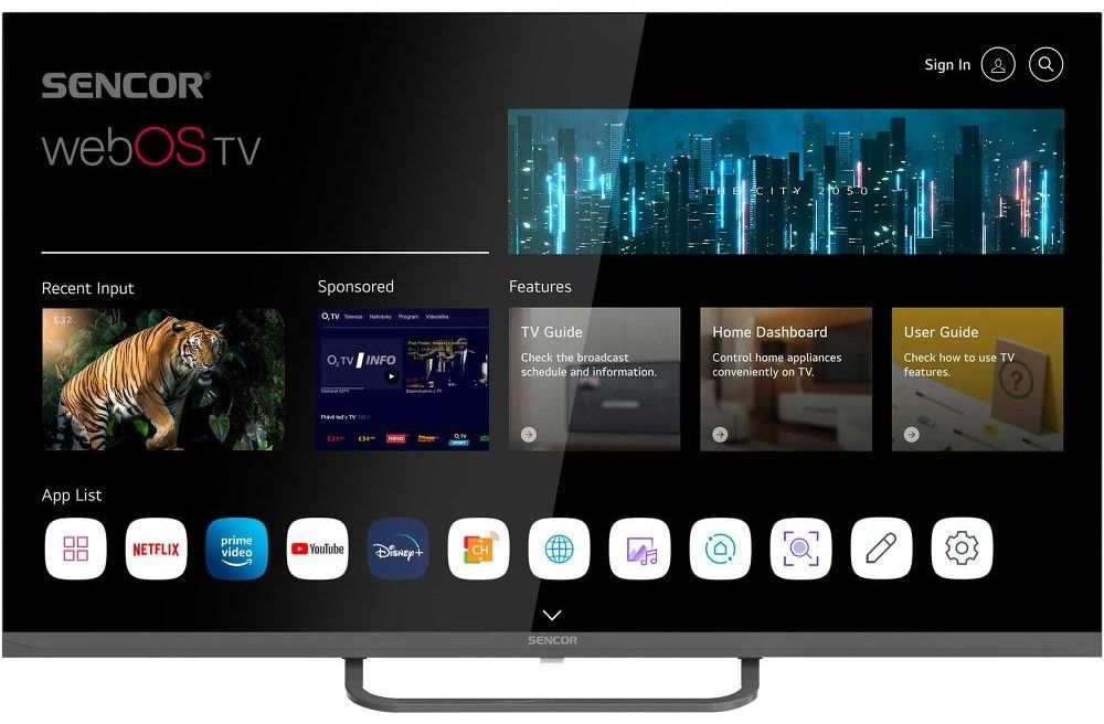 - 3× HDMI CEC (1 × ARC), AV in, RJ45, optický výstup, 2x USB 2.0 (5 V ⎓ 0.5 A), sluchátkový výstup 3,5 mm Jack