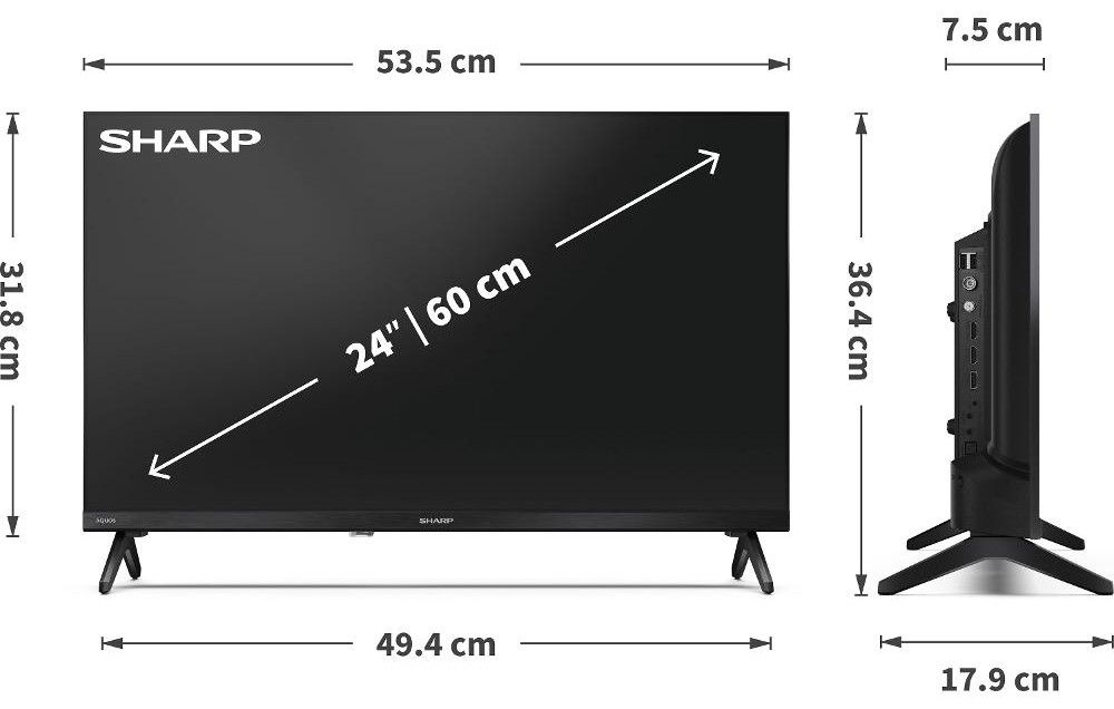 Televize LED, úhlopříčka 60cm, HD READY, Os Google TV, DVB-T2/C, H.265/HEVC, 3x HDMI, 2x USB, Bluetooth, CI+, VESA, repro 2 x 3W.